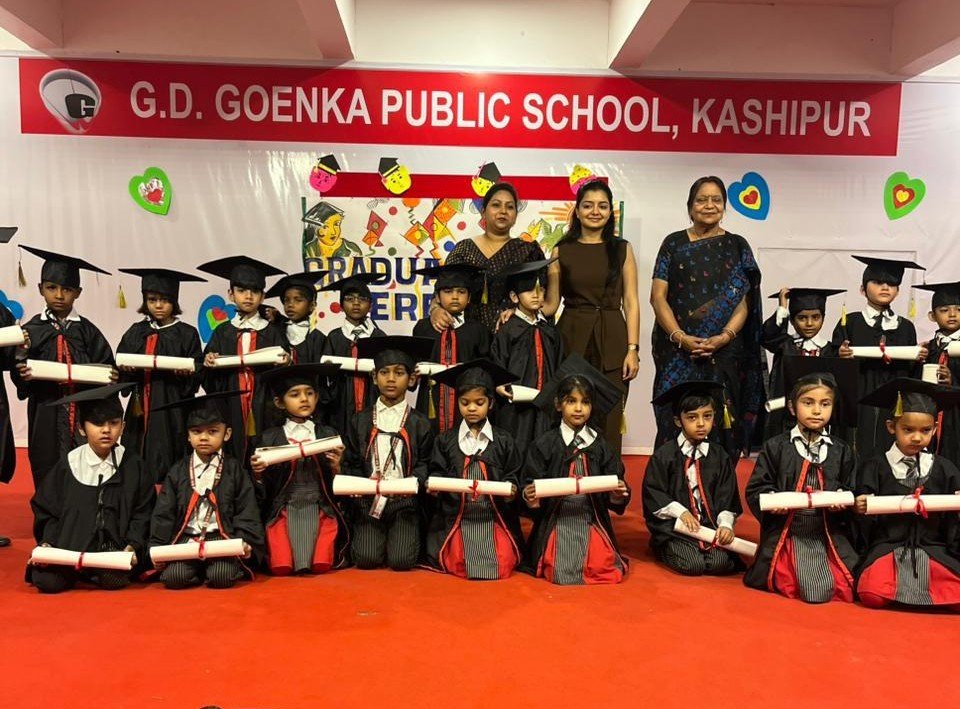 काशीपुर (काशीपुर वार्ता)। जीडी गोयंका पब्लिक स्कूल, काशीपुर के ऑडिटोरियम में बीते रोज शुक्रवार को ग्रेजुएशन सेरेमनी का भव्य एवं आकर्षक आयोजन किया गया। कार्यक्रम का शुभारंभ विद्यालय की को-एमडी रिशिता सक्सेना अग्रवाल, प्रधानाचार्या मधुमिता बनर्जी, इवेंट कोऑर्डिनेटर रेखा सिंह तथा जूनियर विंग कोऑर्डिनेटर बुशरा सिद्दीकी द्वारा दीप प्रज्वलन कर किया गया। कार्यक्रम के दौरान प्रधानाचार्या मधुमिता बनर्जी ने सभी अभिभावकों का आयोजन में सम्मिलित होने के लिए हृदय से आभार व्यक्त किया तथा विद्यालय के प्रति उनके सहयोग को सराहा। उन्होंने बच्चों के सर्वांगीण विकास में अभिभावकों की भूमिका को भी महत्वपूर्ण बताया। समारोह में कक्षा नर्सरी से कक्षा एक तक के नन्हे-मुन्ने बच्चों ने गणेश वंदना के साथ कार्यक्रम की शुरुआत की। इसके बाद बच्चों ने अपने मधुर गीतों, मनमोहक नृत्य और प्रभावशाली अभिनय से उपस्थित जनसमूह को मंत्रमुग्ध कर दिया। बच्चों की आत्मविश्वास से भरपूर प्रस्तुतियों ने दर्शकों को तालियां बजाने पर मजबूर कर दिया। विद्यालय की को-एमडी रिशिता सक्सेना अग्रवाल ने अपने संबोधन में बच्चों के प्रयासों की सराहना करते हुए कहा कि इस प्रकार के आयोजन बच्चों के आत्मविश्वास और प्रतिभा को निखारने में अहम भूमिका निभाते हैं। उन्होंने विद्यालय की विभिन्न शैक्षिक एवं सह-पाठ्यक्रम गतिविधियों की जानकारी देते हुए अभिभावकों से निरंतर सहयोग की अपेक्षा जताई।
